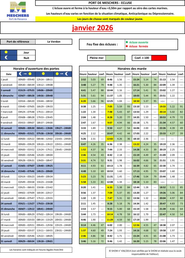 Les horaires de l'écluse 2026Cliquer sur l'image pour télécharger, lire ou imprimer le document au format PDF